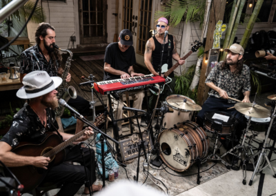 TreeHouse! tracked 8 songs, released as a full session, 4 singles and a soon to be released EP. With the threat of rain, the crew set us up right off the deck and right in the midst of the party. It was their first time trying out this spot, and it actually created an even more intimate experience that translated perfectly to the big screen. We are so thankful for the hard work and dedication of the Sugarshack family and are fortunate to be one of the hundreds of amazing bands they’ve worked with over the years!!!
